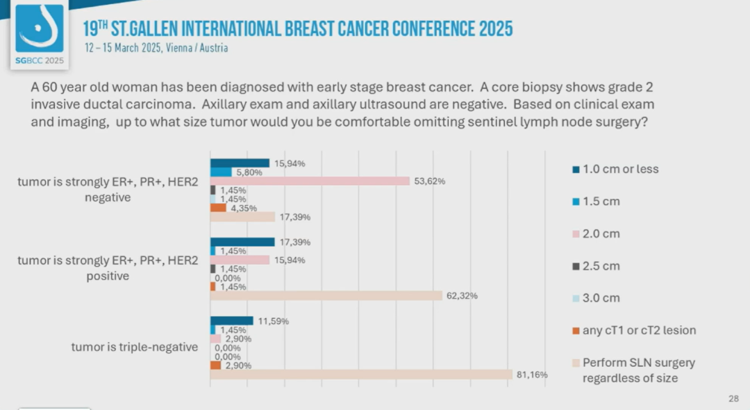 编者按:第19届St.Gallen国际乳腺癌大会(SGBCC 2025)于当地时间2025年3月12~15日在音乐之都维也纳举行。大会的最后一天,专家投票压轴登场。《肿瘤瞭望》整理了保乳和腋窝处理章节、放疗章节的专家投票,现成文如下,与大家一起感受早期乳腺癌治疗决策的圣加伦氛围。