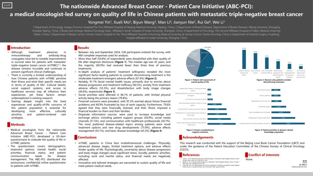 2025 ESMO BC丨殷咏梅教授:中国晚期三阴性乳腺癌患者生活质量调查分析