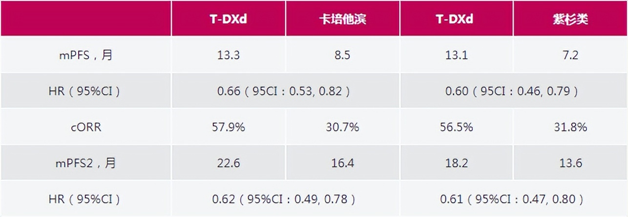 表2.DB-06事后分析:T-DXd相较于不同化疗方案的疗效分析
