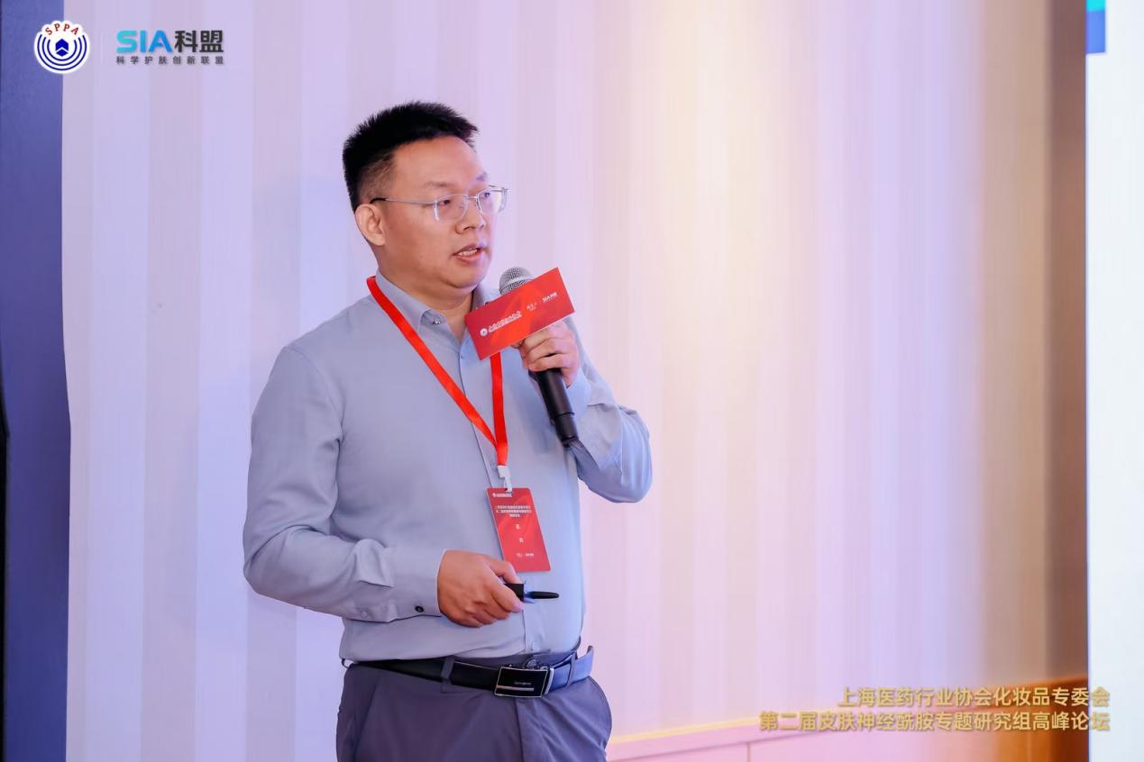 重庆智合生物医药有限公司 何刚总监分享了《产业化神经酰胺介绍及二氢鞘氨醇神经酰胺开发》,介绍了企业在神经酰胺原料研发与产业化方面取得的创新成果,并重点展示了二氢鞘氨醇神经酰胺的应用进展与经验。