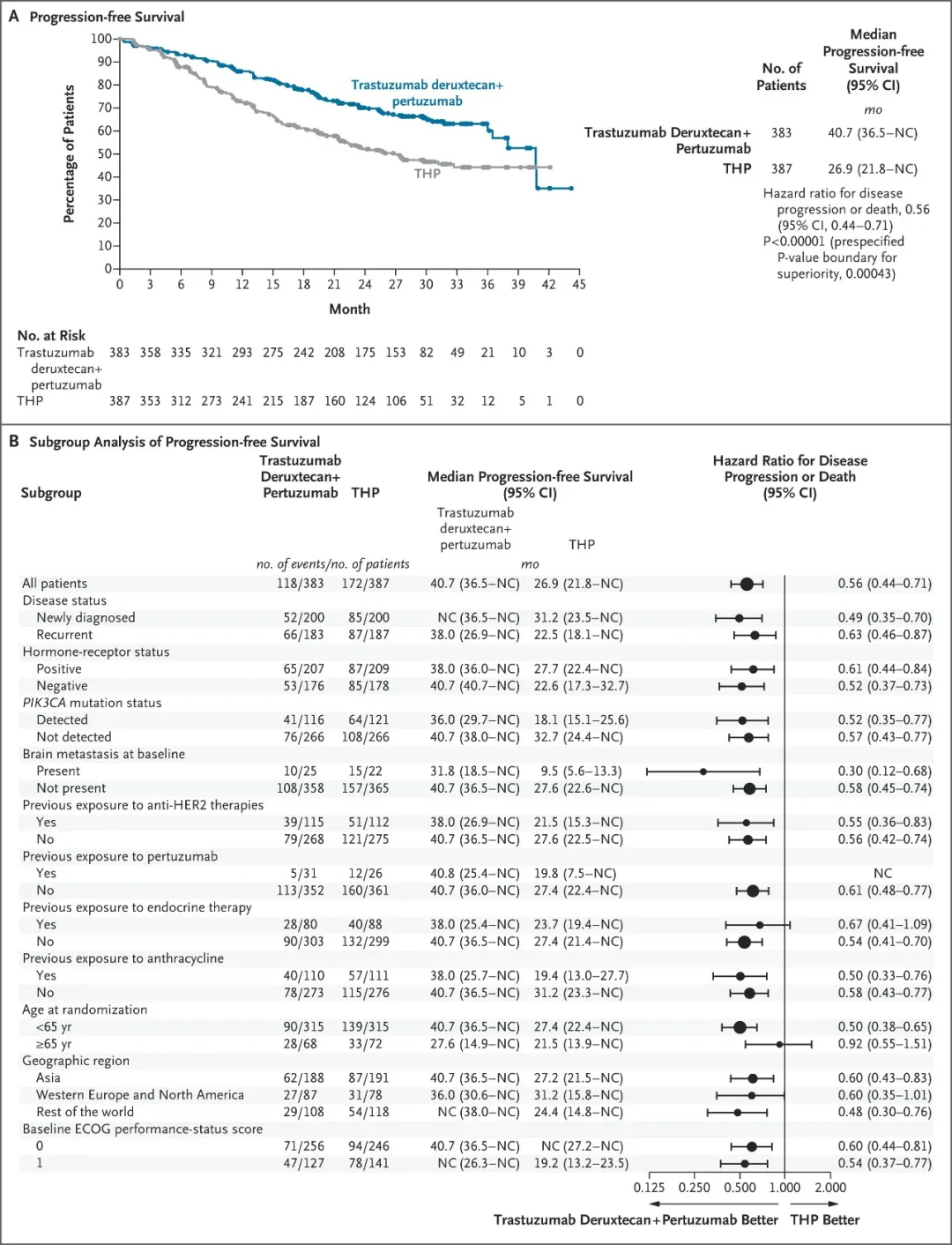 在该研究中,中国纳入了273例患者,并在前不久的CSCO学术年会中公布了中国亚组数据,充分证明了该研究中T-DXd+P方案所带来的临床获益[2]。相信不久的将来,相关适应症将会得到国际、国内药品监管部门批准,极有希望改变临床实践。