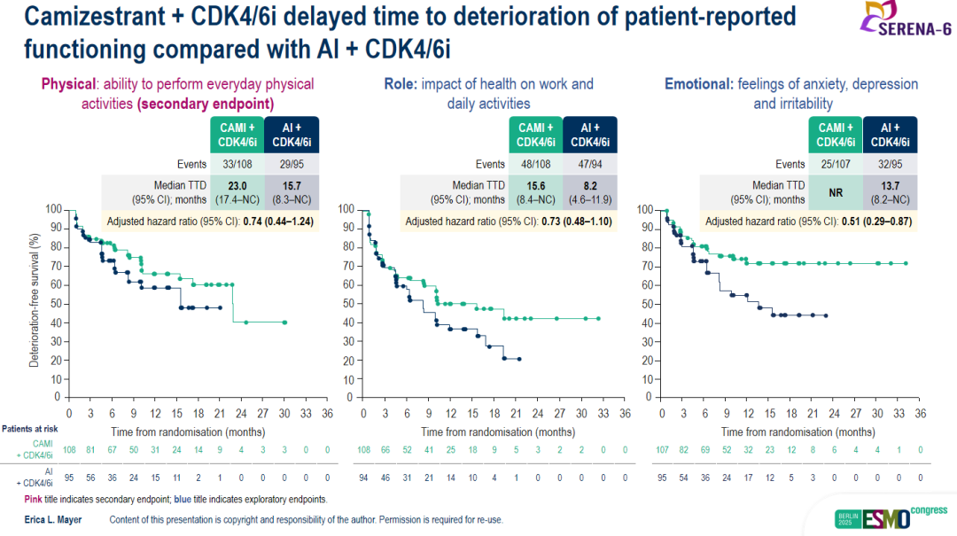 图2.SERENA-6研究中Camizestrant延缓患者各功能量表评分恶化的疗效
