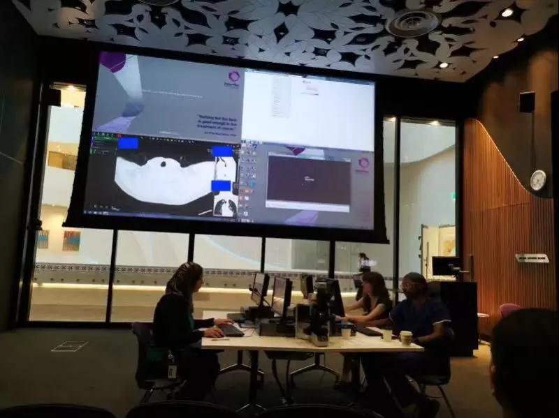 最后一天是从早上7点开始,多学科讨论(MDT),Peter Mac的多学科讨论的硬件支持,是我看到过国外医院中最好的(嫉妒)。 剧场式的会议室面对巨大的投影屏幕,分为四块内容——包括常规CT/MRI、PET/CT、病理、临床病史,屏幕前有五位专家,面对四个电脑和一台显微镜,所有的内容都是即时提取、投影、讨论。这种硬件条件,近乎奢侈的MDT设备,体现了对于疾病细节评估的重视(评估永远是MDT的第一步),也确实非常具有教学的价值(坐满了住院医师)。一共讨论了13个病理,同时对于9例术后患者的病理进行了回顾和点评(所有的术后患者都根据MDT判断效果和后续方案)。正如PeterMac的理念一样,Nothing but the best is good enough in the treatment of cancer。