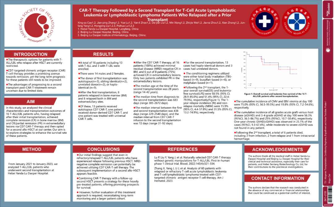 ASH中国之声丨曹星玉教授:CD7 CAR-T后二次移植治疗既往移植后复发T-ALL/LBL患者的可行性